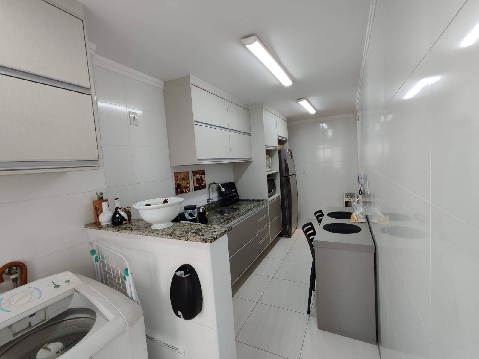 Cozinha moderna, área de serviço e área técnica bem distribuídas.